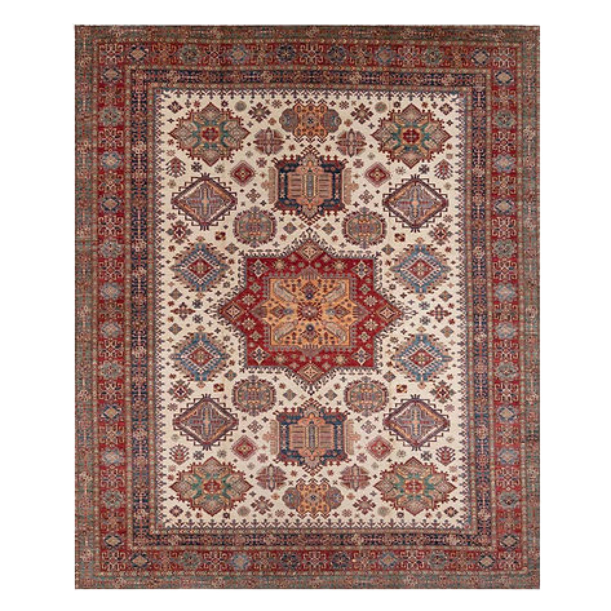 Add timeless elegance to your home with this stunning 12.2 x 14.11 ft hand-knotted Fine Kazak rug, expertly handcrafted in Afghanistan. Designed for large and luxurious spaces, this new rug fuses bold traditional design with rich colors and exceptional craftsmanship.