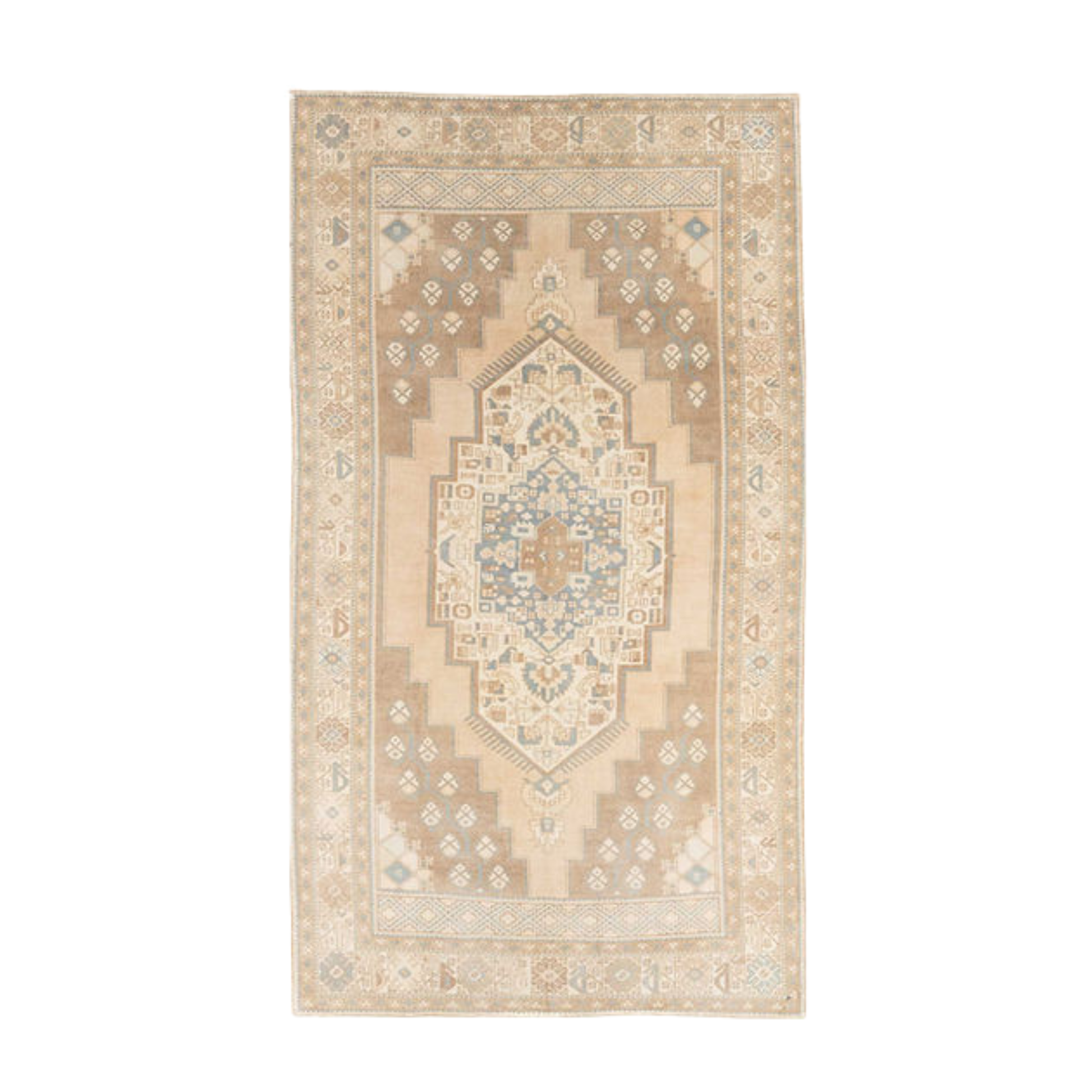 Featuring a harmonious blend of tan, light blue, brown, and subtle beige tones, this rectangular rug showcases traditional Oushak motifs that tell a story of craftsmanship passed down through generations. Perfect for hallways, dining areas, or layering in larger rooms, it adds a curated, designer touch to your décor.